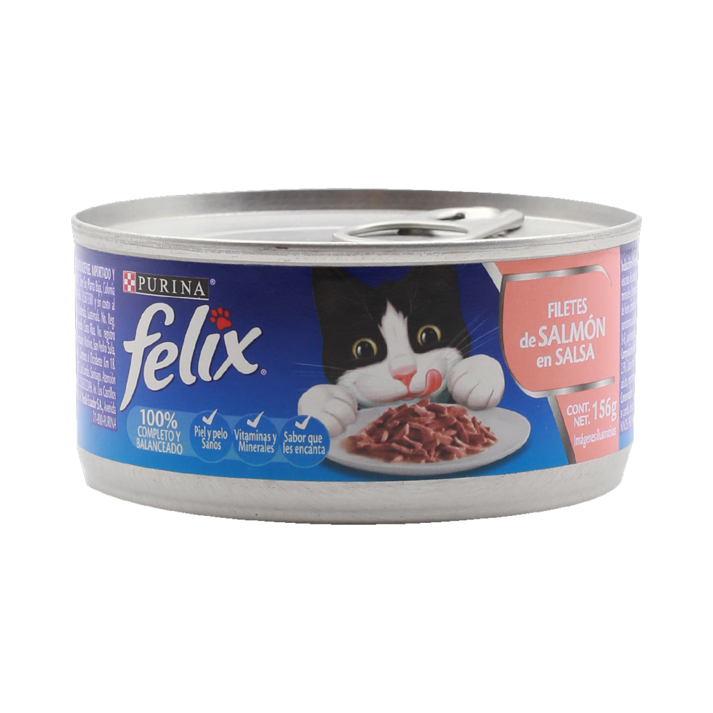 Purina Felix Filetes de Salmón es un alimento húmedo, con tiernos trocitos de salmón bañados en la cantidad exacta de una deliciosa salsa que le darán un sabor irresistible. Tu gato hará cualquier travesura para conseguirlo. Con un 80% de humedad, Felix es Para ayudar con la hidratación de tu gato. Las diferentes variedades de Felix combinan sabores y texturas únicas. Su olor, sabor y apariencia serán irresistibles para tu gato.