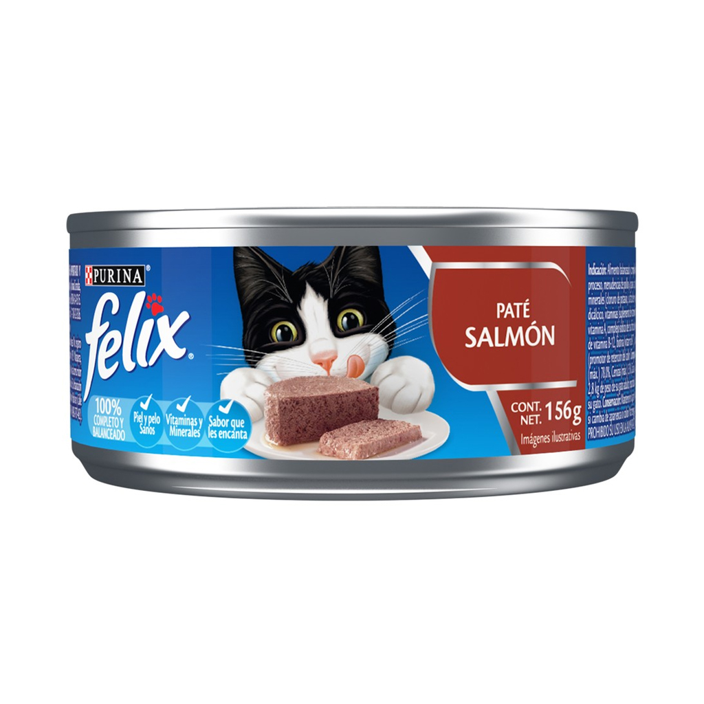 Purina Felix sabor Pate de Salmón es un delicioso alimento humedo, dándole a tu gato sabores, texturas y aromas que querrá comer todos los días. Tu amigo disfrutará de la irresistible variedad de comida cada día, y eso no es todo, cada porción está complementada con ácidos grasos esenciales Omega 6, con una combinación balanceada de nutrientes para satisfacer al 100% las necesidades diarias de tu gato. Este delicioso alimento provee a tu gato con todos los minerales, proteínas y vitaminas que él necesita con los sabores que a él le encantan. Con Purina Felix ahora es más fácil dar a tu astuto gato un irresistible y saludable alimento cada día, sin colorantes, saborizantes ni conservadores artificiales.